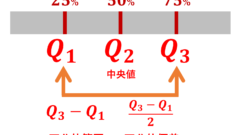 Q_1, Q_3 の決め方など詳しくは四分位数・四分位範囲・四分位偏差をわかりやすく図解で解説しています。