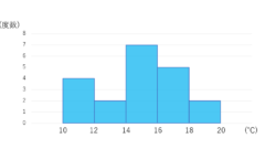 今回は「気温データ」を例にしましたが,各生徒のテストの成績や,各生徒の50m走のタイム, n 択アンケートの集計など,さまざまなものを度数分布表にすることが可能です。