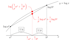 である(→ヤングの不等式の証明とその一般化)。この両辺積分すると,