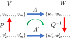 - A を線形写像 f の表現行列(行列表示)と思ったときの \operatorname{rank} f = \dim\operatorname{Im} f ,すなわち, f の像 (image) の次元 (これを,線形写像の階数(ランク; rank)という)。