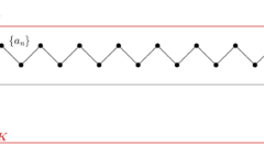 実数の数列 \{a_n\} は(広義)単調増加(すなわち \color{red} a_n \le a_{n+1} )とし,かつ上に有界(すなわち \color{red} a_n < K ) とする。