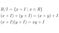 以下で, a\in R について, R/I の元 a+I を \overline{a} と略記することにします。逆に, \overline{a}\in R/I に対し,対応する R の代表元を一つ取ってこれますから,そのうちの任意の1つを a\in R とかきます。