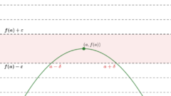 すると, 0 < |x-a|<\delta のとき, |f(x) - b| < \varepsilon, \,\, |g(x) - b| < \varepsilon の両方が成立することになる。特に,