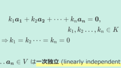 なお,本記事では \mathbb{R}, \mathbb{C} 上のベクトル空間のみ扱いますが一般には体 K 上のベクトル空間として考えることが可能です(初学者や数学専門外の方は無視してください)。